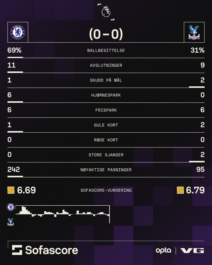 Da lagene møttes i Premier League endte begge oppgjørene helt likt: 1-1. På Stamford Bridge i september i fjor var det Nicolas Jackson og Eberechi Eze som scoret målene, mens på Selhurst Park scoret Cole Palmer og Jean-Philippe Mateta hvert sitt mål.