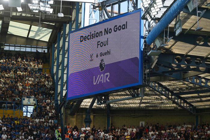 Men etter en VAR-sjekk blir den annullert. Dytten fra Guehi er for tøff og står for nærme muren, og Palace får dømt frispark mot seg.