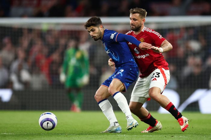 Victor Lindelöf (t.v.) og Chelseas Noni Madueke i duell. Foto: PA Photos
