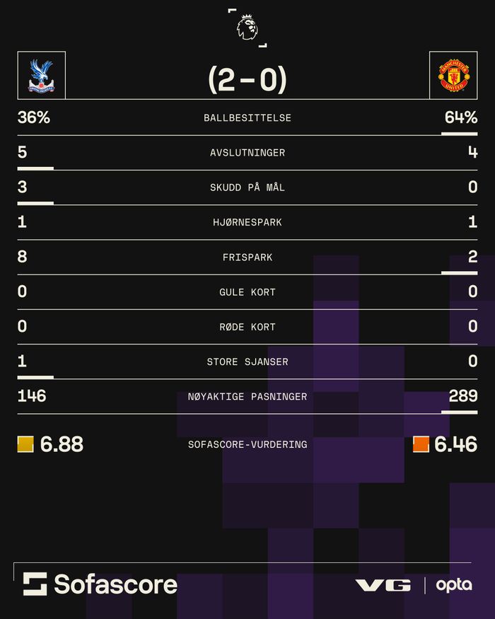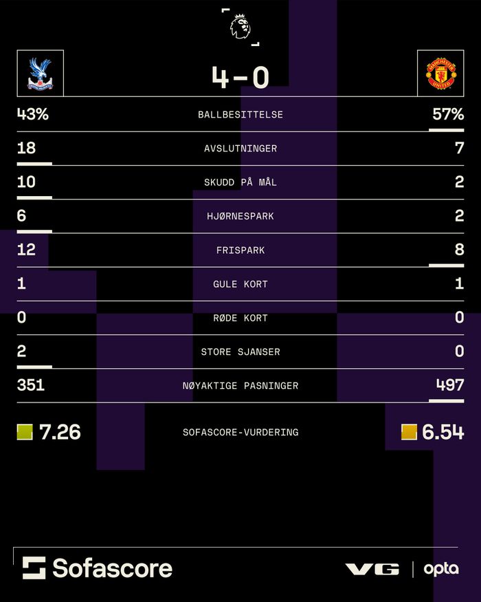 Marerittkvelden er over for alle United-fans. 4-0 til Crystal Palace etter en kamp hvor Erik ten Hags gutter aldri var i nærheten.