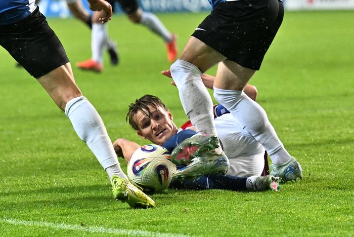 Ødegaards corner havner rett i klypa på Estlands keeper.