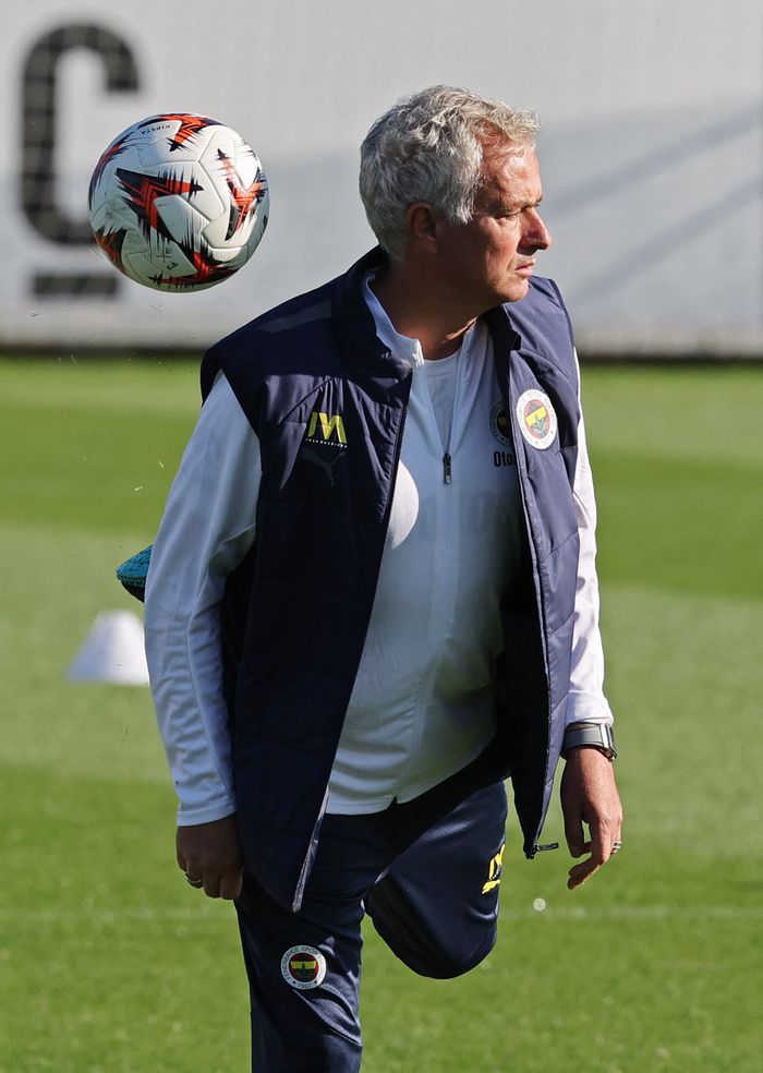 I heksegryta til Fenerbahce i Istanbul tar José Mourinho imot sin gamle klubb Manchester United. Det må jo bli show? Her en leken Mourinho under gårsdagens trening.