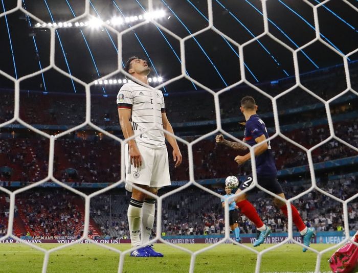 1. omgang er over. Frankrike leder etter et selvmål signert Mats Hummels. Kampen har nok ikke levd opp til de høye forventningene før avspark, men det skal spilles 45 minutter til. Vi håper på mer action etter hvilen! Foto: Reuters.
