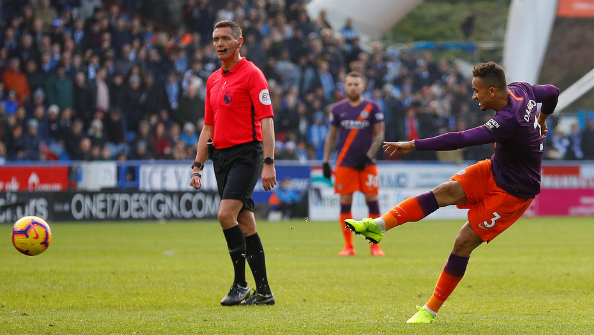 Huddersfield vrir spillet fint mot høyre. Tanken er god, men Danilo ser faren og avskjærer pasningen.
