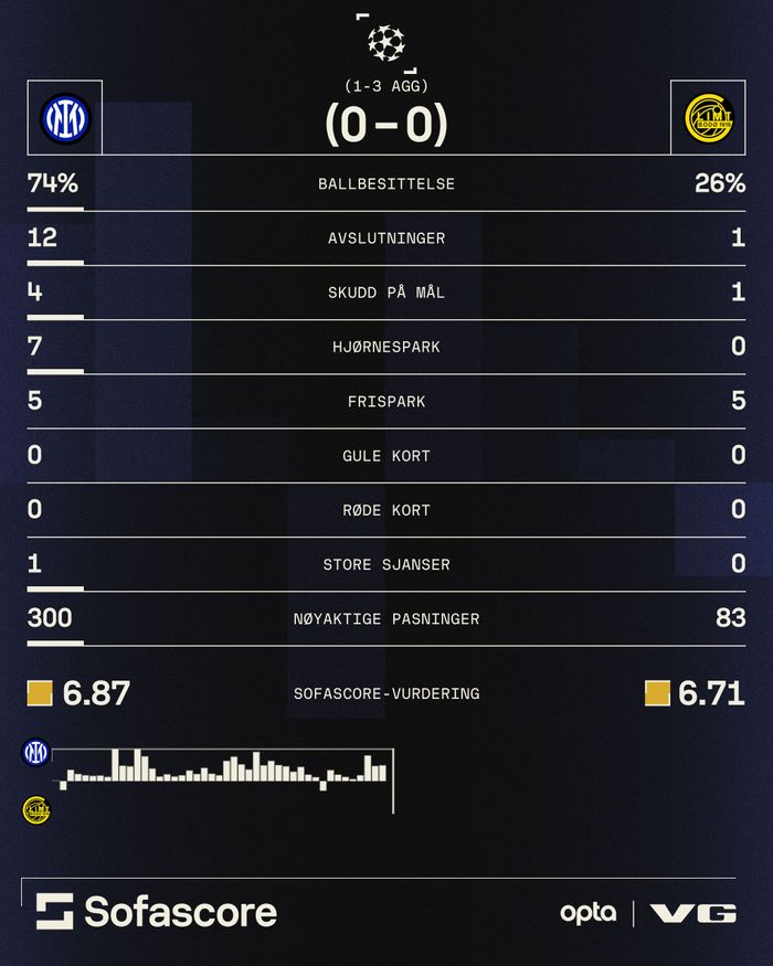 Velkommen til livedekningen av returoppgjøret mellom Inter og Bodø/Glimt i Champions League-playoffen!