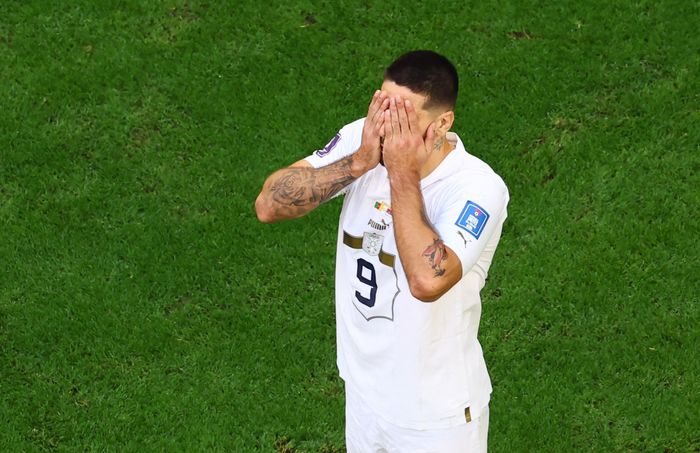 Mitrovic i stolpen! Han kombinerer flott på høyresiden med Tadic. Han får ballen nede ved dødlinjen til høyre i sekstenmeteren og drar av nydelig med en skuddfinte. Det gjør at han får tid til å klemme til med venstre. Den skrur i stolpen og ut.