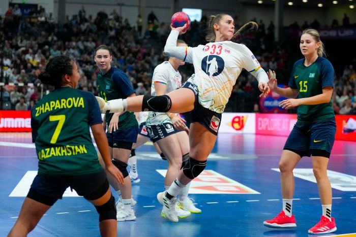 Kasakhstan mister ball, og det kastes langt mot Wollik. Hun setter den enkelt i mål.