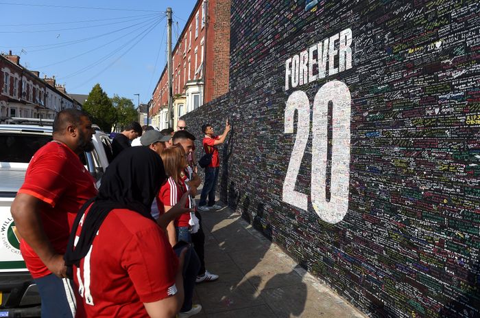 Supporterne strømmer til allerede, og mange av dem tar turen til «Forever 20»-veggmaleriet bare et par gater unna Anfield Road.