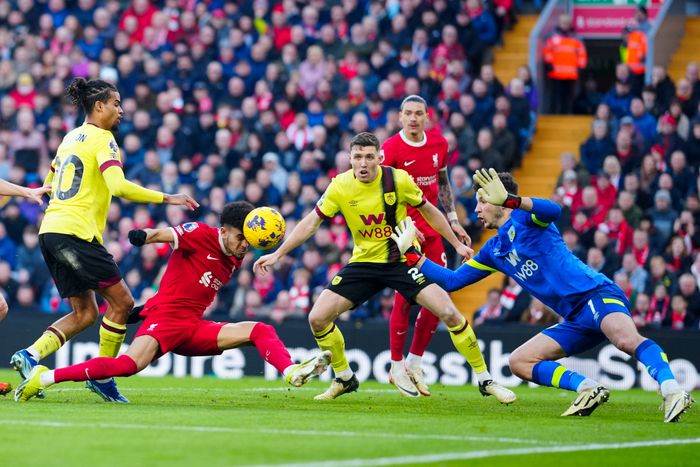 Endelig satt den for Darwin Núnez. Igjen havner ballen smått tilfeldig hos Elliott når Burnley ikke får klarert skikkelig. Innbytteren lemper ballen på hodet til Núnez som på mesterlig vis stanger inn 3-1.