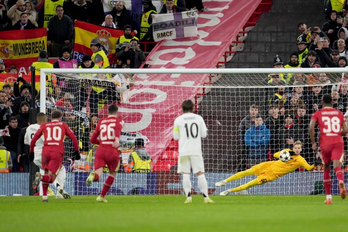 Frisparket tildelt Real Madrid er farlig nær Liverpool FCs målområde.