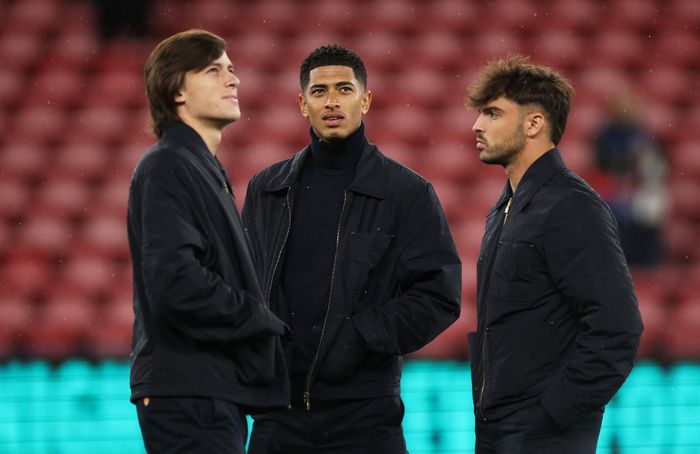 Jude Bellingham ute for å sjekke forholdene på Anfield. Real Madrids engelske stjerne spiller sin 50. kamp i Champions League i kveld.