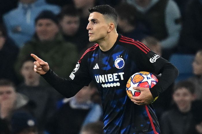 For en keepermiss, av nettopp FCK-keeperen som Haaland trakk frem på gårsdagens pressekonferanse! Kommer fra corner. Rodri på bakerste header i metallet, ballen ender hos Alvarez som fyrer av fra distanse, men Grabara har såpe på hanskene.