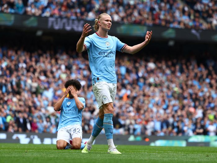 Uvirkelig bom av Haaland! Gundogan legger inn til De Bruyne som legger til rette for Haaland med en herlig flikk med utsiden. Nordmannen banker til fra cirka 8-9 meter, men ballen stryker stolpen. Det er en grov miss, Haaland!