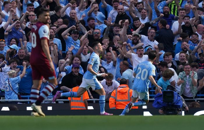 2-0 City - og feiringen virker å være i gang på Etihad! De har Premier League-trofeet i sin hule hånd, og West Ham ser helt hjelpeløse ut her.
