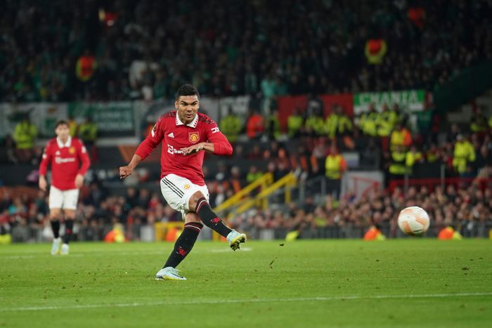 Bruno Fernandes banker den over! Casemiro legger fint igjen, men det er for mye vekt i ryggsekken til portugiseren.