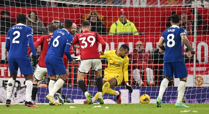 Det måtte jo nesten komme! Nok en gang er det Chelsea som mister ballen på vei fremover, noe de har gjort mange ganger i åpningen her. Først får Maguire avsluttet fra ti meter, men Chelsea redder på strek. McTominay er imidlertid sikker på returen!
