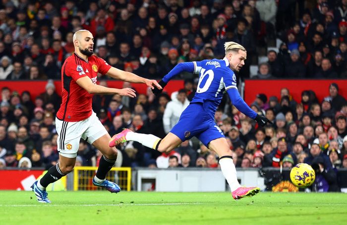 Stor United-mulighet! Antony skyter via en Chelsea-spiller og i nettveggen. Corner!