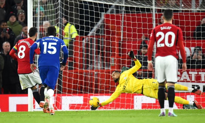 Så er det Fernandes som skyter via en Chelsea-spiller og ut til et nytt hjørnespark.
