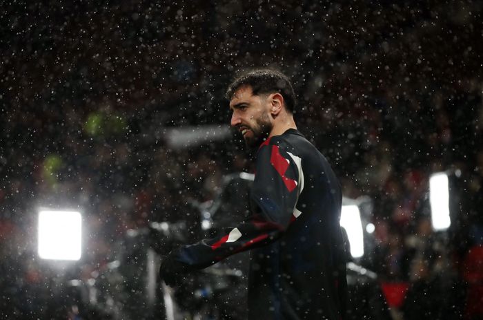 Bruno jager en lang ball når United kontrer og får med seg Mazraoui på et sigende løp inn i boksen, men innlegget blir for langt.