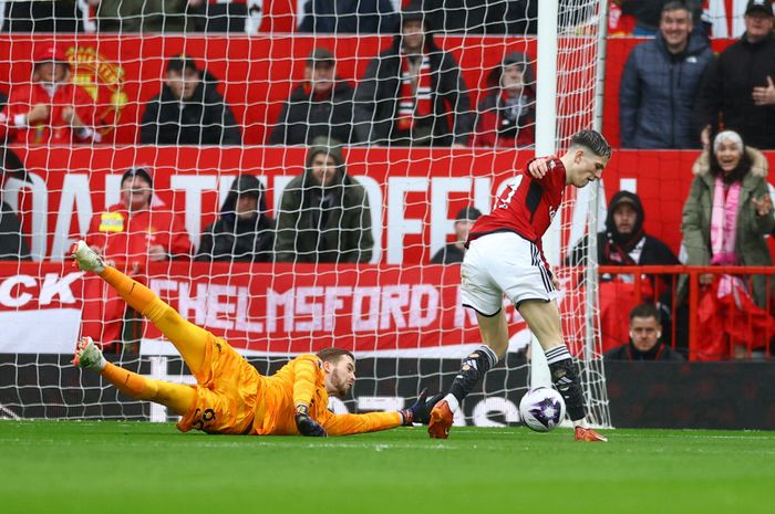 Skuddet som ga 2-1 av Mainoo. Foto: Reuters