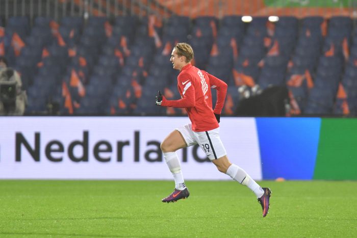 Nederland (4-3-3): Jasper Cillessen - Denzel Dumfries, Matthijs de Ligt, Virgil van Dijk, Daley Blind - Frenkie de Jong, Gini Wijnaldum, Davy Klaassen - Steven Bergwijn, Memphis Depay, Arnaut Danjuma.