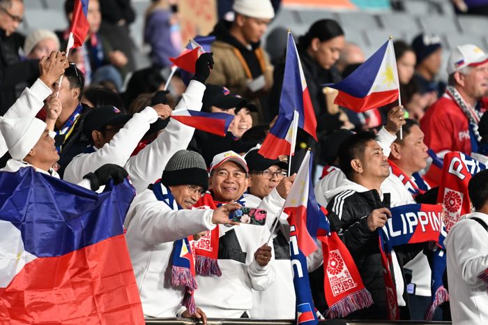 Norges motstandere får massiv støtte fra tribunen i dag. Det er ventet flere tusen filippinske fans på tribunen i Auckland. Foto: Bjørn S. Delebekk / VG