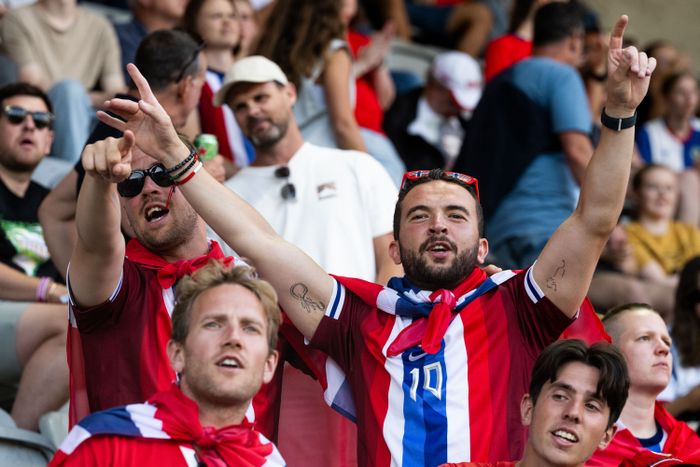 VGs reporter på stadion melder om enorm stemning fra det norske publikum under nasjonalsangen. «Det var som å høre på et 17. mai-kor. Ruunget utover stadion!»
