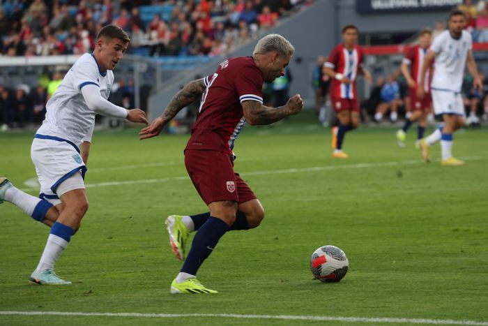 Oscar Bobb leker seg på høyre side mot Kosovo. Foto: