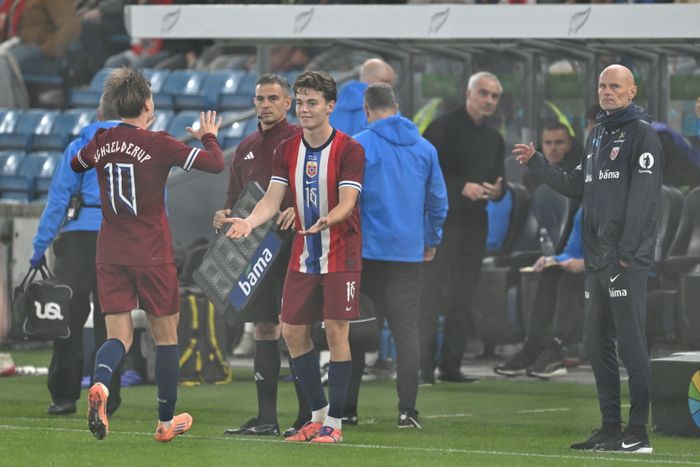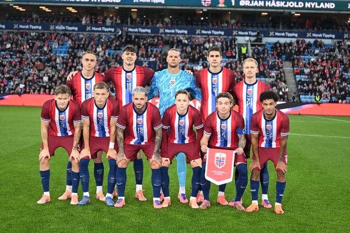 Norge starter slik (4-3-3): Nyland - Pedersen, Helland, Hanche-Olsen, Møller Wolfe - Bobb, Berg, Aasgaard - Dønnum, Strand Larsen, Schjelderup