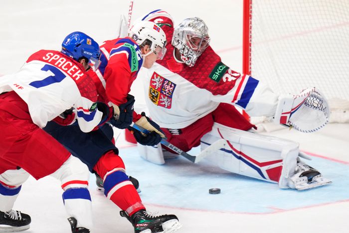 Tsjekkia nære ny scoring, men skuddet fra Dominik Kubalik er upresist.