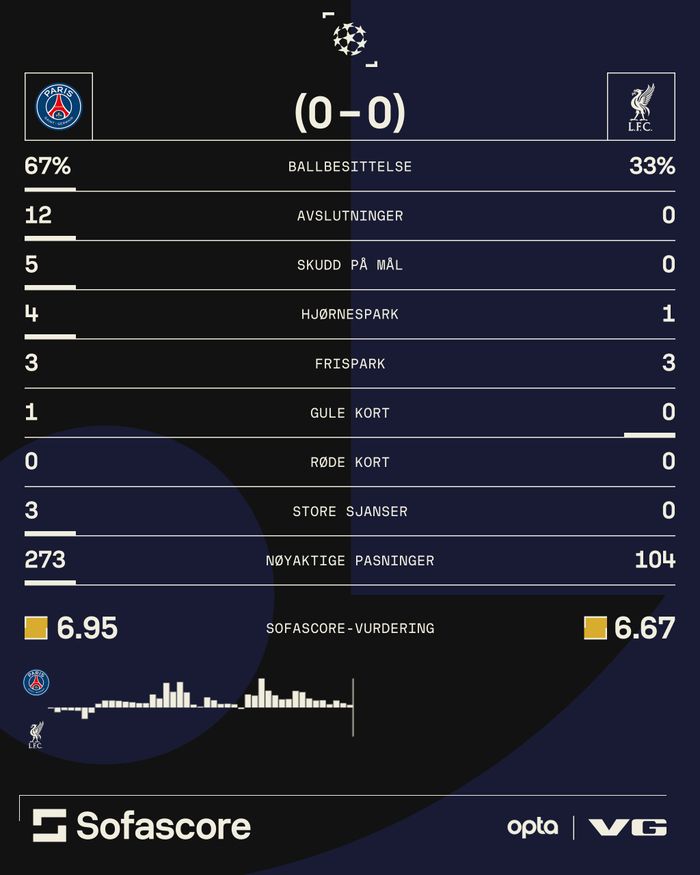 En liten fot i offside på magikeren fra Georgia. Hadde vært fullt fortjent om PSG hadde tatt ledelsen, men vi er like langt
