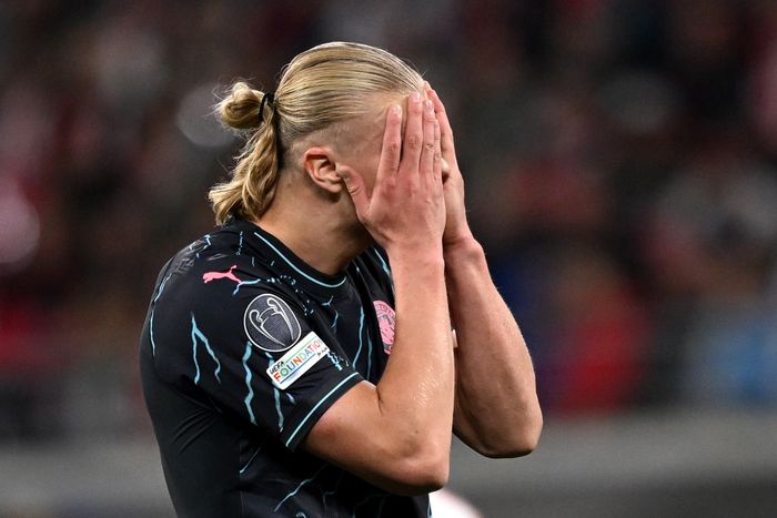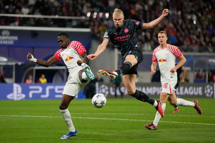 Erling Braut Haaland starter nok en Champions League-kamp for Manchester City. Nordmannen scoret vanvittige fem mål mot nettopp RB Leipzig i åttedelsfinalen i fjor. Foto: Reuters