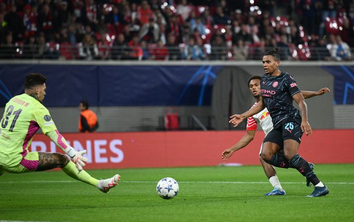 Blaswich presses av Haaland og Bernardo Silva og slår ballen til innkast.