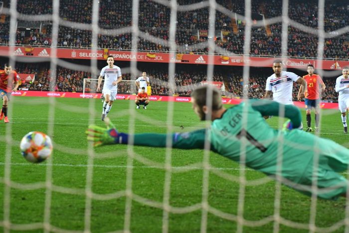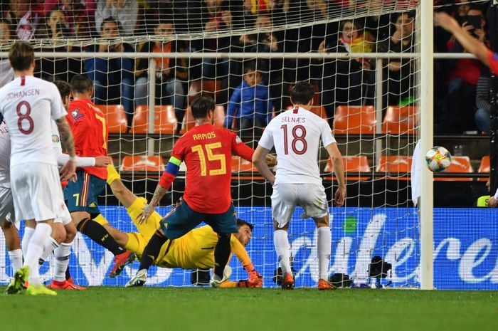Spania leker seg inne i Norges boks, men Ajer får satt inn en livsviktig i tolvte time.