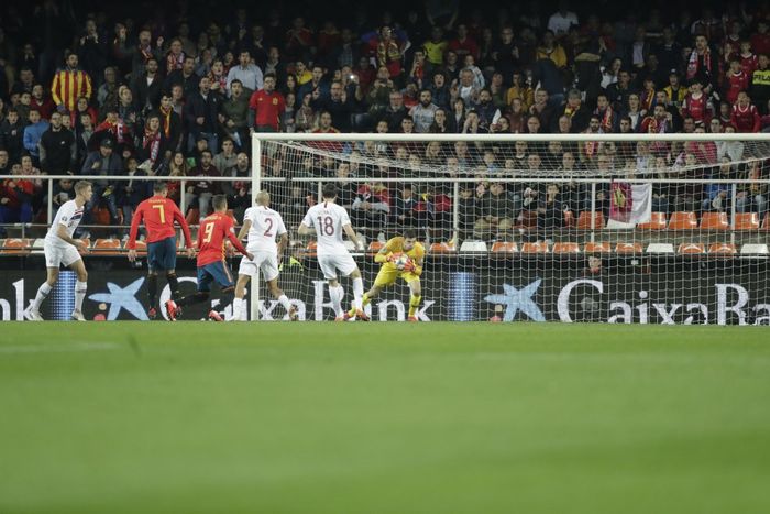 Et kampbilde akkurat som forventet på Mestalla. Spania dominerer.