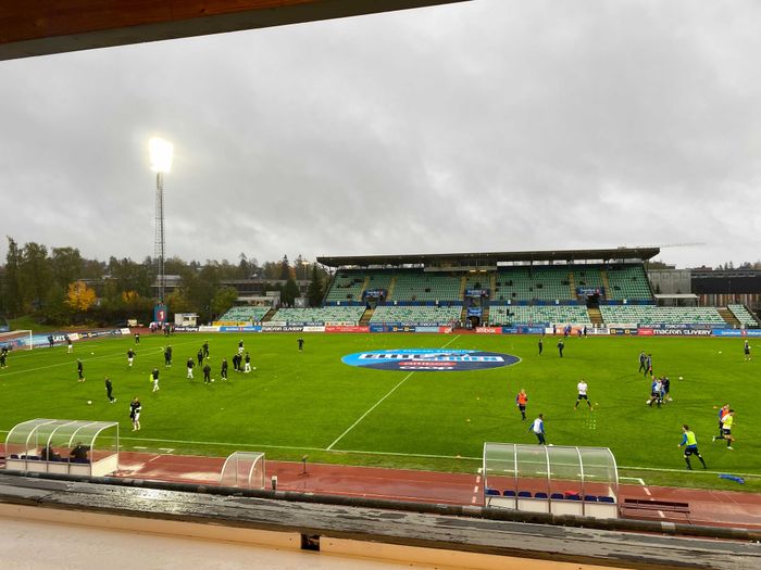 Dommer Rohit Saggi har vært ute og inspisert gressmatten på Nadderud på grunn av regnfallet de siste dagene. Avgjørelsen er at kampen spilles, men det er ikke alle fornøyde med. Glimt-trener Kjetil Knutsen er klar i sin tale når han blir spurt om kampen bør spilles eller ei av Discovery+, en snau halvtime før kampstart:
