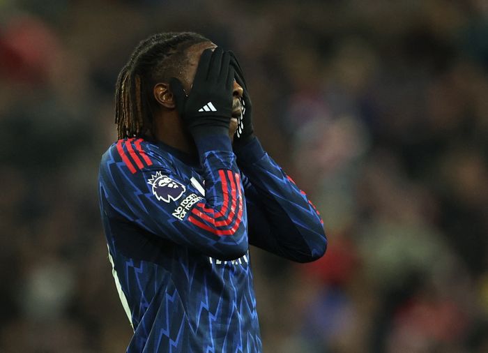 Sadiki tupper ballen vekk fra Saka, men gir bort en corner.