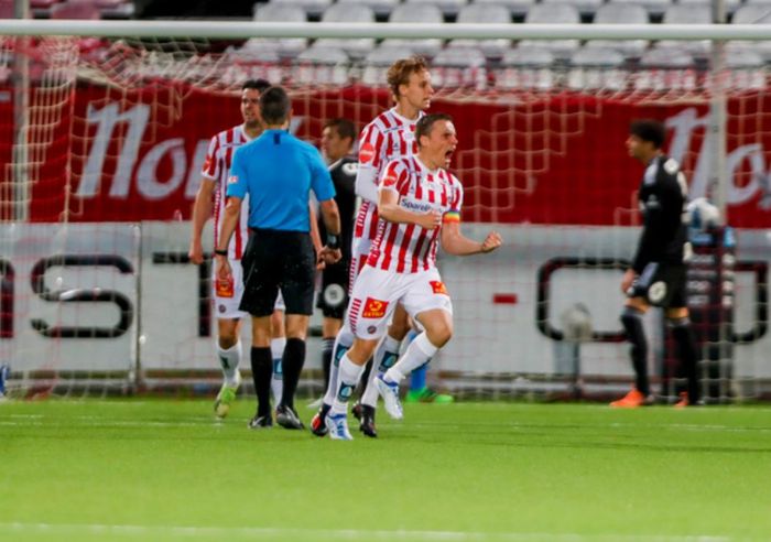 Enorm dobbelsjanse for vertene! Nordås spilles gjennom av Mikkelsen og alene med keeper Hansen misser han. Men han får returen også i beina. Han prøver seg på nytt, men denne gangen er det Markus Henriksen som blokkerer på streken.