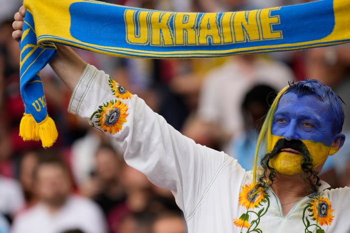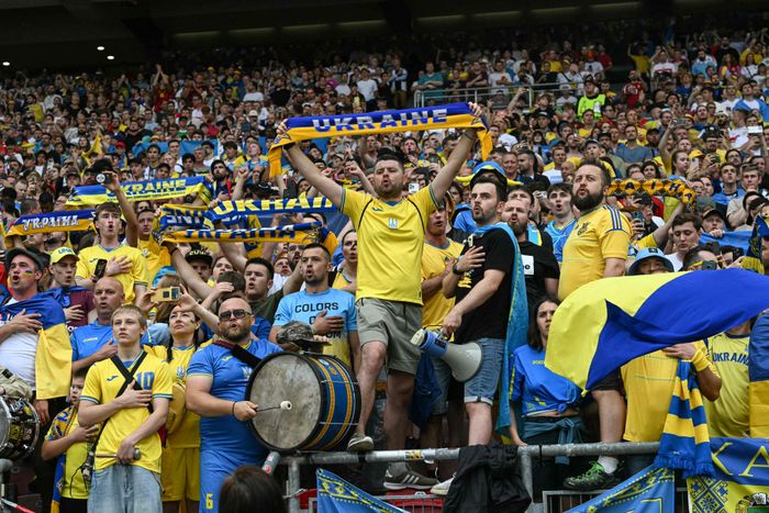 Ukrainske supportere er godt forberedt. Foto: AFP