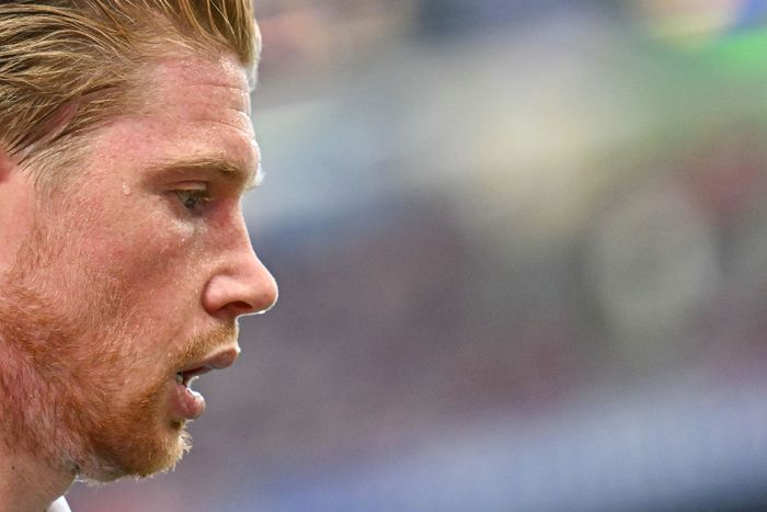 Lang ball i bakrom mot De Bruyne, men han rekker ikke den.