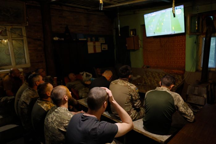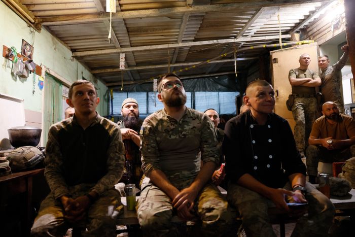 Soldater i Donetsk-regionen, der kampene er hardest, følger kampen. Foto: Reuters