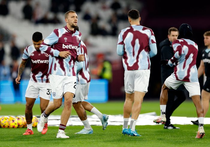 Tomas Soucek og West Ham-kompisene varmer opp til møtet med London-naboene. Midtbanespillere scoret det første mot Newcastle sist.