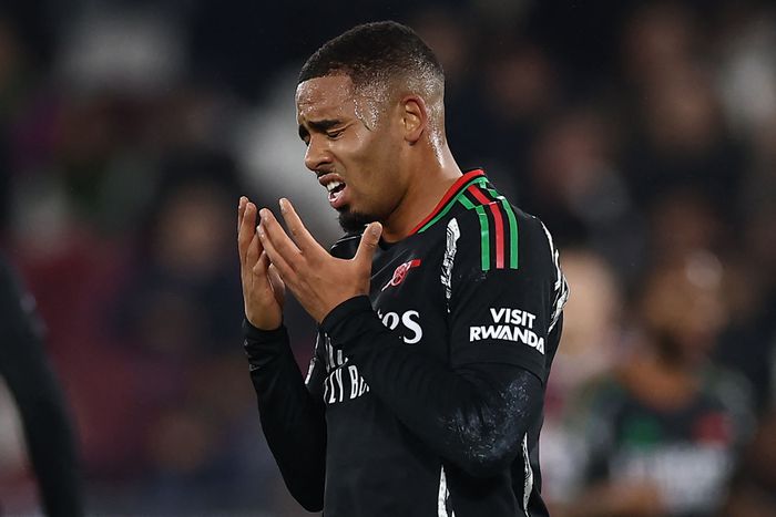Jesus får med seg ballen inn i feltet, men slurver når han skal legge an til skudd. West Ham får klarert. Jesus er oppgitt over seg selv.