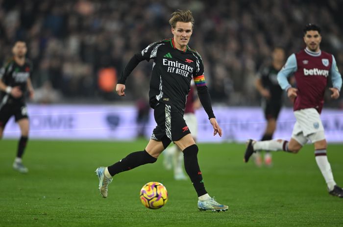 Så går Ødegaard ned etter en duell med Kilman. Kapteinen har fryktelig vondt, og holder seg til den høyre foten. Arteta er rasende på sidelinjen.