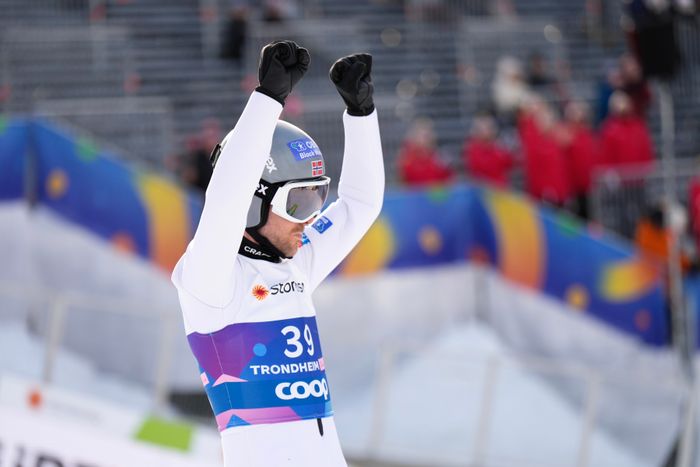 Espen Bjørnstad jubler over hoppet sitt. Foto: Ole Martin Wold, NTB