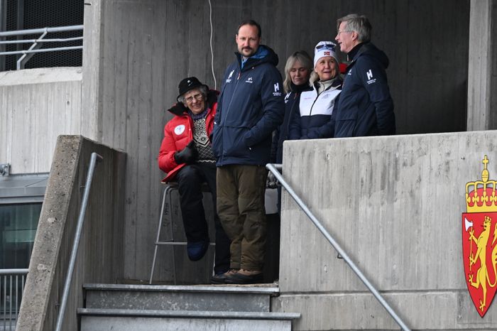 Kongefamilien er representert i dag. Her er Kronprins Haakon og prinsesse Astrid (92) på plass.