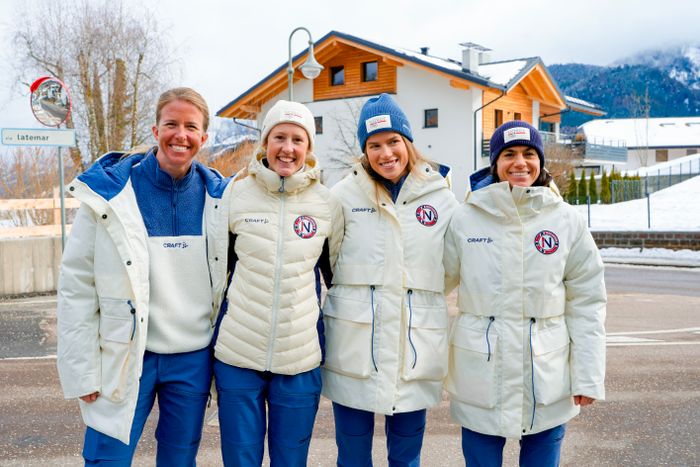 Astrid Øyre Slind (f.v.), Karoline Simpson-Larsen, Kristin Austgulen Fosnæs og Heidi Weng er de fire løperne som går for Norge. Foto: Terje Pedersen / NTB.