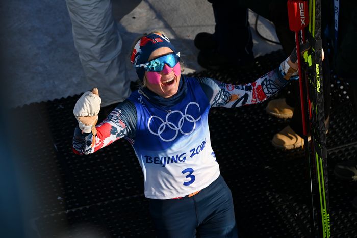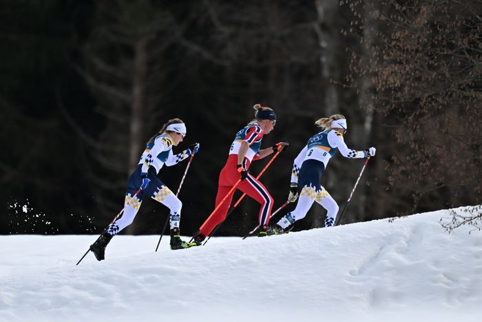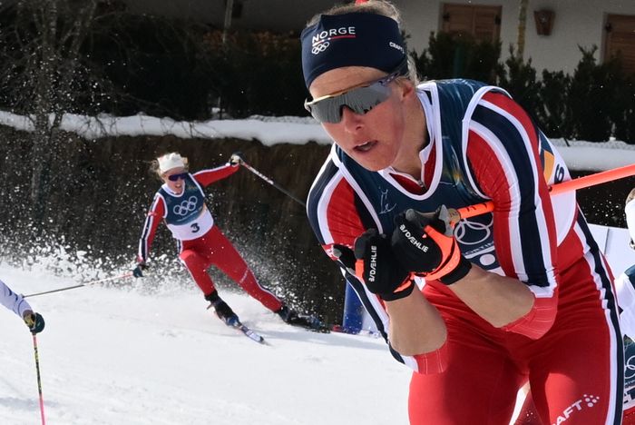 Og her har nettopp Therese Johaug tatt gull på øvelsen i forrige OL, i 2022. Natalya Nepryayeva fra Russland tok sølvet, Teresa Stadlober fra Østerrike bronsen. Foto: Bjørn S. Delebekk / VG.