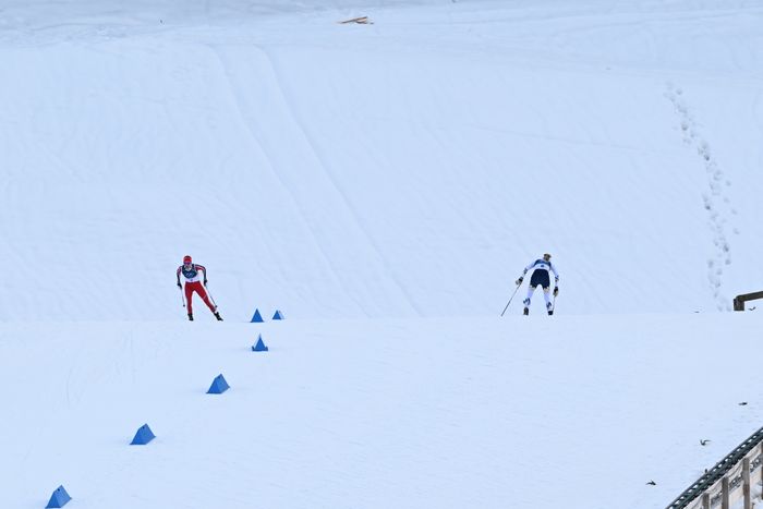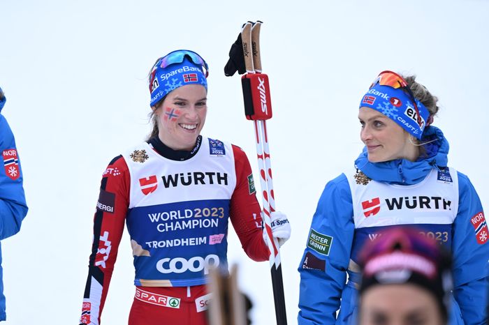 Heidi Weng er 23 sekunder bak henne i sporet, og hun ser vesentlig piggere ut. Skal Weng utfordre Slind om bronsen, mon tro?