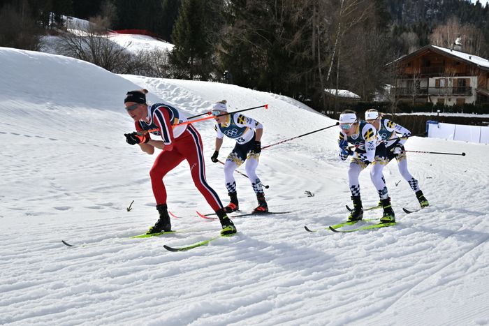 Svenskene Jonna Sundling, Frida Karlsson, Ebba Andersson og Moa Ilar. Og verdenscupleder Jessie Diggins, som går sitt siste mesterskap i karrieren.